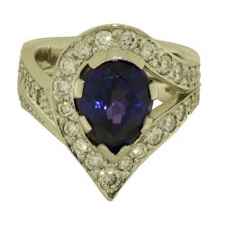 A natural untreated Tanzanite gemstone Handmade with diamonds in platinum and finger-shaped band for very special clients who gave free reign on the design. Please contact us about your commission