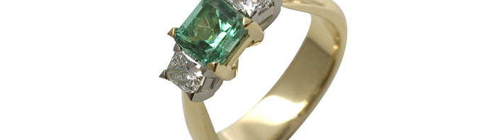 Natural emerald and radiant cut diamonds in 18ct yellow/white gold