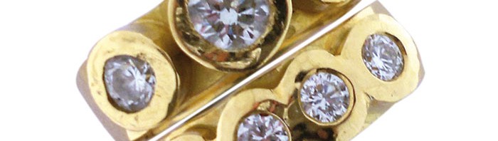 With diamonds. Available in a variety of metal combinations and finishes.